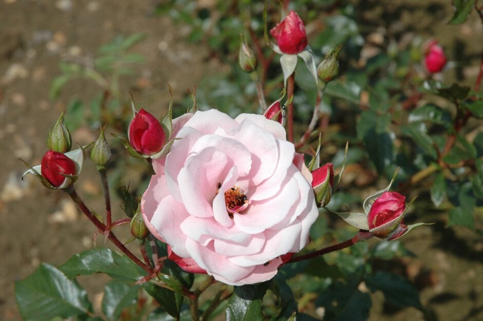 Vigorous bushy rose about 90cm tall, with dark green leaves and clusters of fragrant, pale pink flowers, darker on the reverse, opening from pinkish-red buds, appear in large clusters, repeat-flowering from early summer to autumn
