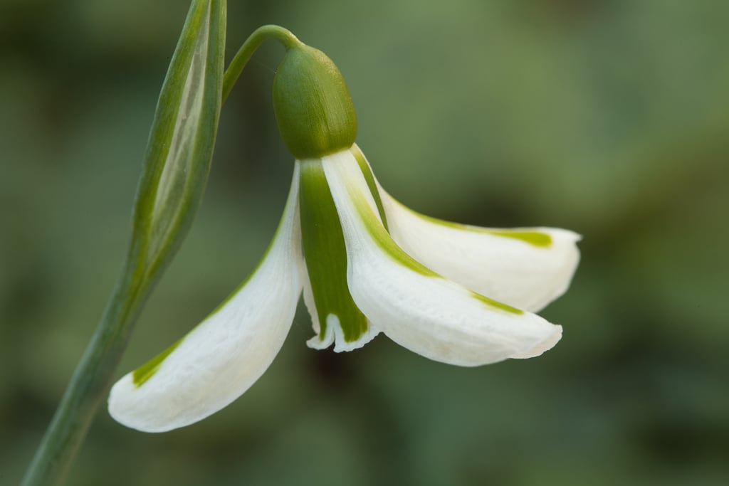 Galanthus are dwarf bulbous perennials with linear or strap-shaped leaves, and solitary, often honey-scented, nodding flowers with 3 white outer tepals and 3 smaller inner ones often marked with green