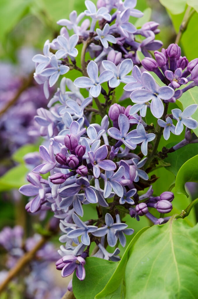 Syringa can be deciduous shrubs or trees, with simple, entire or rarely pinnate leaves and conical panicles of small, very fragrant, 4-lobed tubular flowers in late spring or early summer