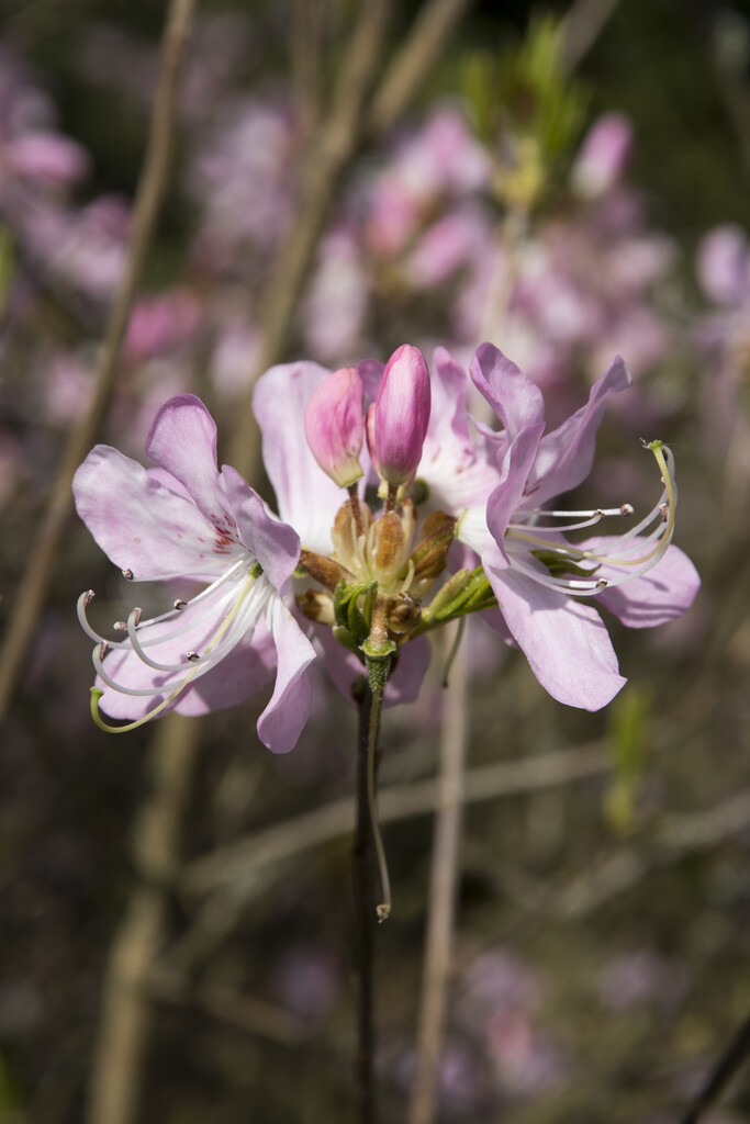 Rhododendron can be evergreen or deciduous shrubs or trees, with simple leaves, sometimes with a dense colourful indumentum of hairs on the lower side, and funnel-shaped, bell-shaped or tubular flowers that may be solitary or in short racemes