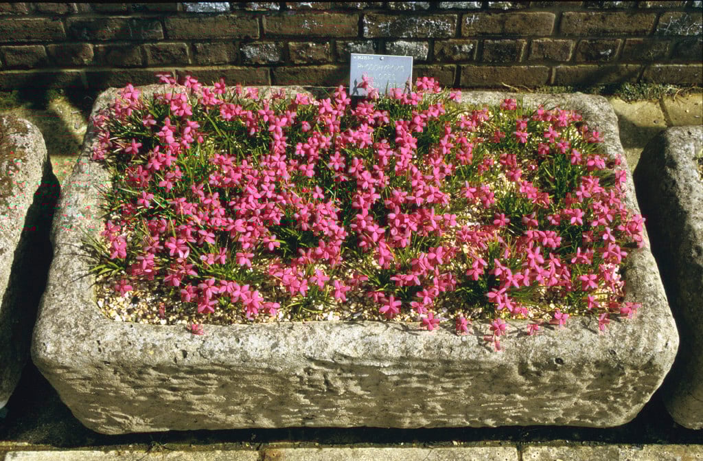A low-growing, clump-forming perennial to 15cm, with upright, narrow, keeled and folded leaves up to 17cm long. The six-petalled, star-shaped flowers are dark red, dark pink or white, up to 3.5cm across and carried over a long period in summer