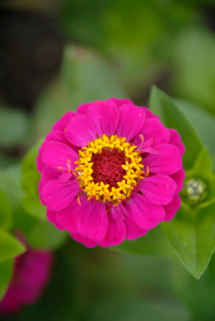 Zinnia can be annuals, perennials or sub-shrubs, with branching stems bearing opposite leaves and solitary terminal flower-heads in summer