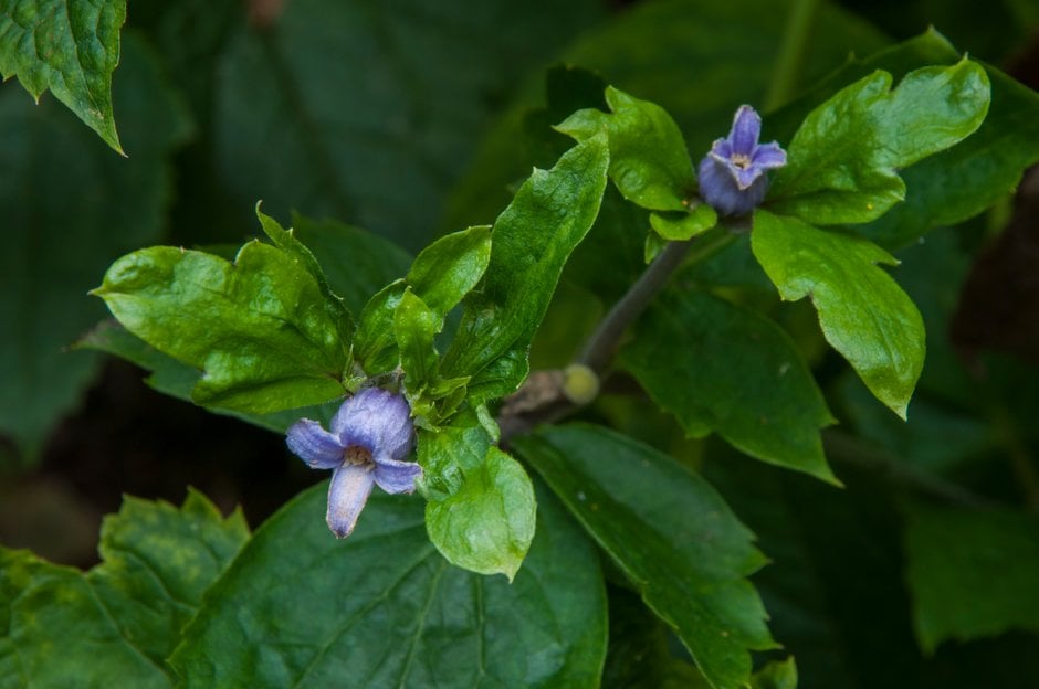A woody-based, perennial clematis to 2m tall with dark green leaves divided into three toothed leaflets. Fragrant, urn-shaped, pale blue flowers that are darker on the inside and with recurved petal tipsare borne on erect stems from late summer into autumn