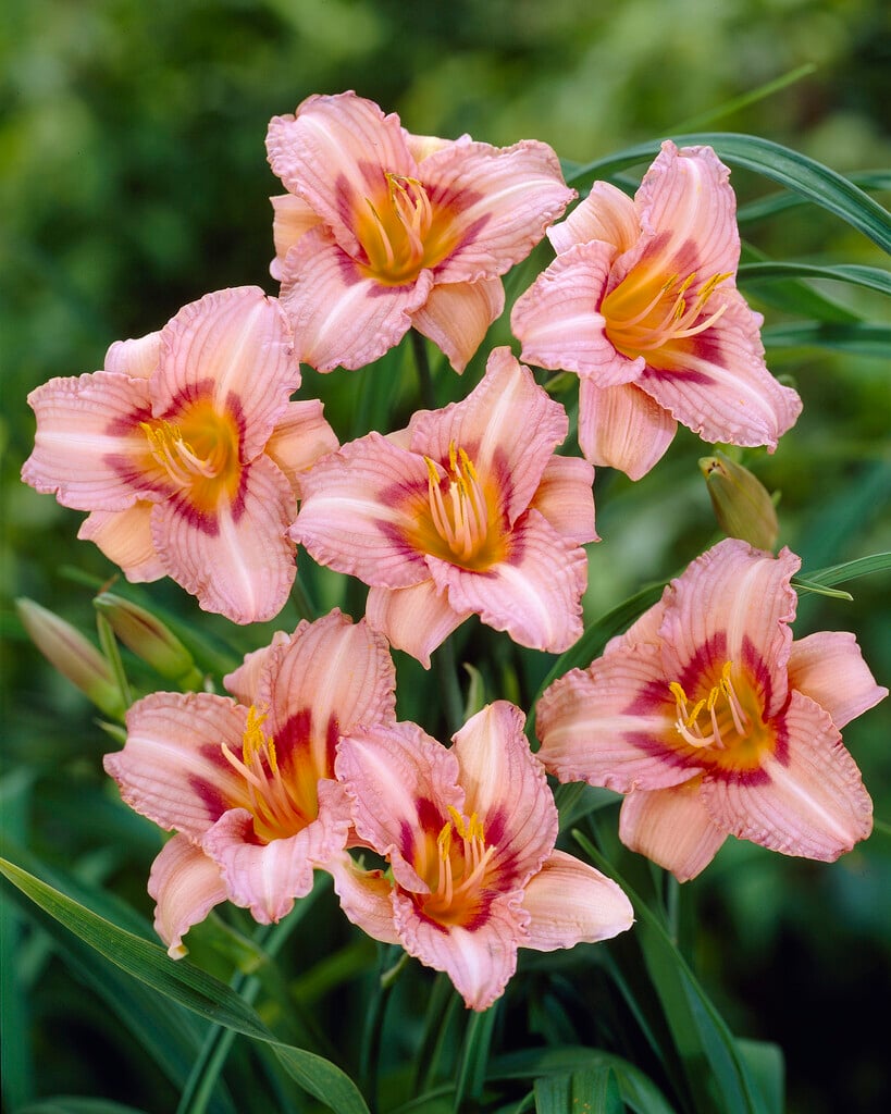 Hemerocallis may be evergreen or herbaceous perennials, with narrow, strap-shaped leaves and funnel-shaped flowers on erect stems in late spring or early summer