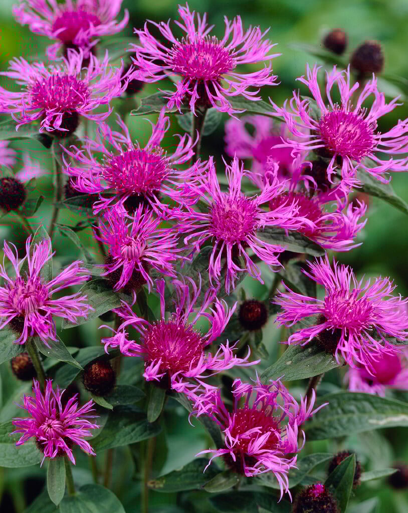 Centaurea may be annuals, perennials or subshrubs, with simple or pinnately lobed leaves and showy thistle-like flowers-heads, often with enlarged outer florets