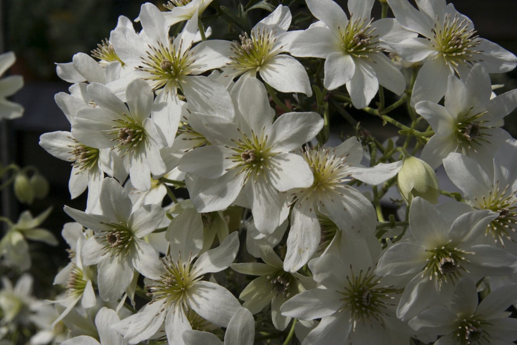 - Forsteri Group clematis are dwarf spreading or prostrate evergreen shrubs, usually dioecious, with deeply cut, trifoliate leaves and small cream or white, sometimes fragrant, flowers