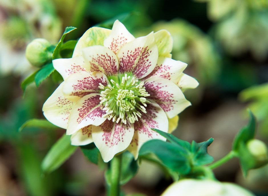 Remove old leaves to help prevent hellebore leaf spot, and deadhead by removing old faded flower stems