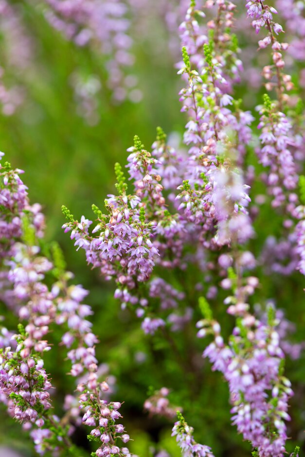 Calluna are low-growing or dwarf evergreen shrubs with stems clothed in tiny overlapping leaves, and terminal, spike-like racemes of small, 4-petalled flowers with coloured calyces