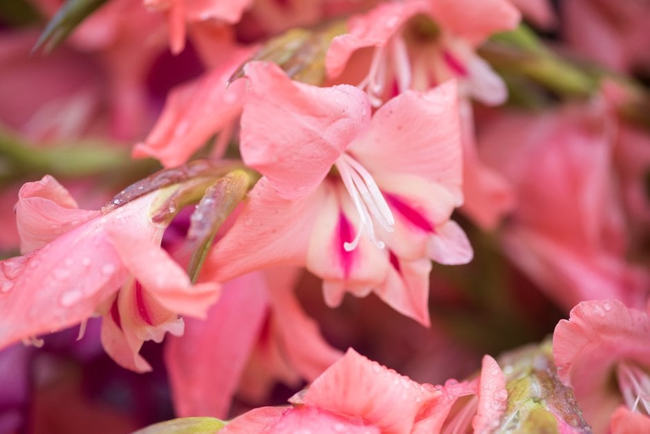 Gladiolus are cormous perennials with fans of sword-shaped or linear leaves and spikes of funnel-shaped flowers