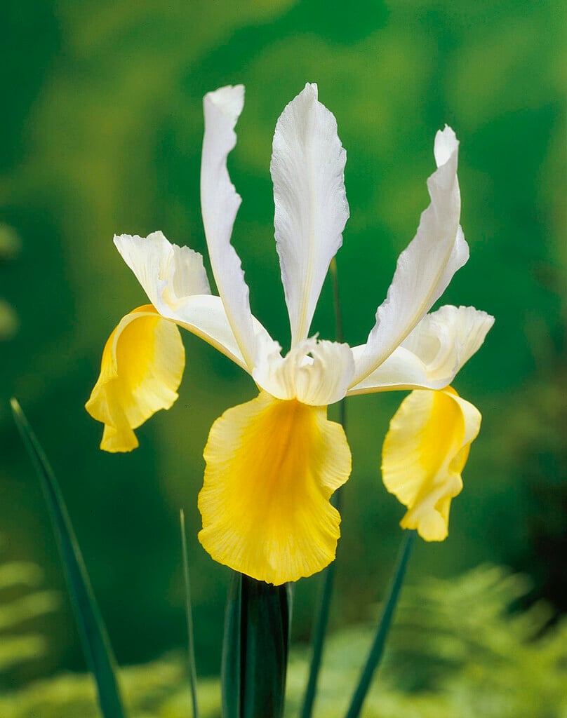 - Dutch Iris are herbaceous bulbous perennials with narrow, channelled leaves and blue yellow or white flowers in late spring and early summer