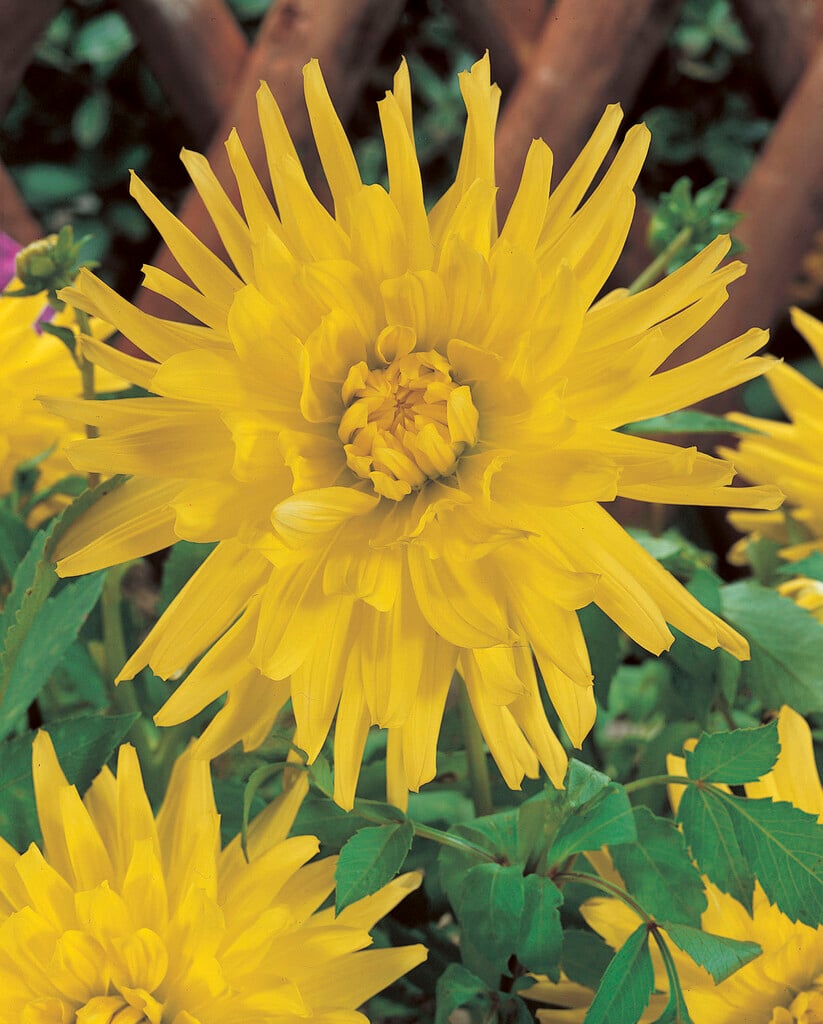 A tall, tuberous-rooted perennial to about 1.4m with mid-green foliage. Large, lemon-yellow flowers about 22cm across are produced from mid-summer until the first frost. As the outer petals open the edges roll under, creating a sunburst effect
