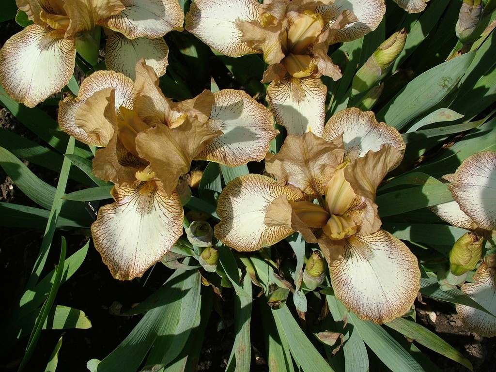 - Intermediate Bearded irises are deciduous rhizomatous perennials, growing between 40 and 70cm tall, with sword-shaped light glaucous green leaves and erect stems bearing flowers 10-13cm across, bearded on the falls, in late spring and early summer