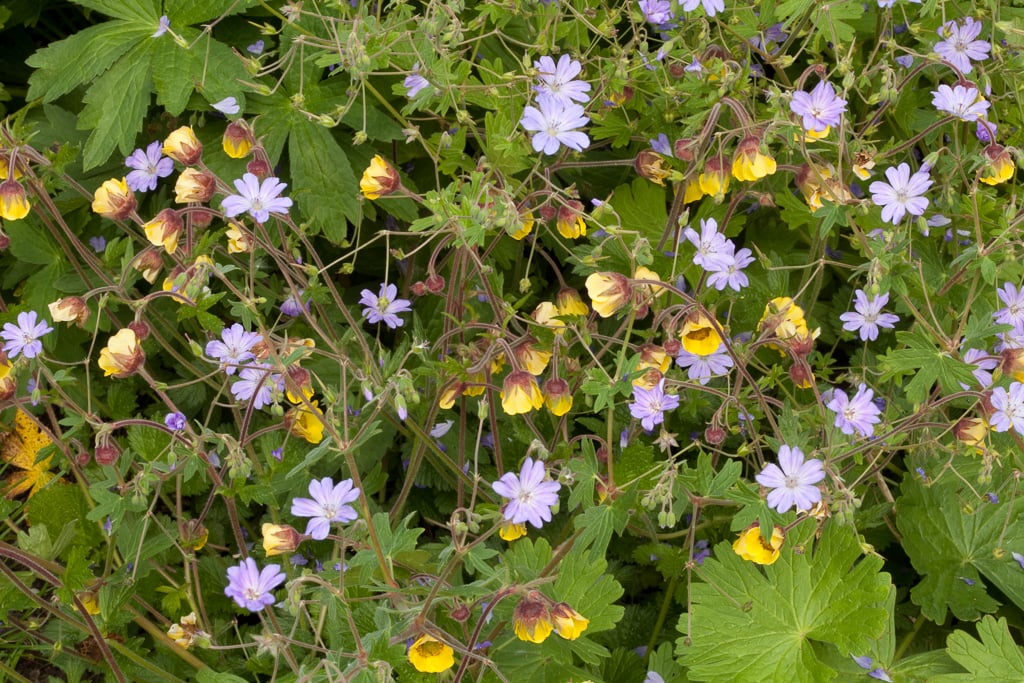 A compact, clump-forming perennial forming a low mound of semi-evergreen, lobed and toothed leaves above which nodding, primrose-yellow flowers are borne on upright, reddish-purple stems from mid-spring into early summer