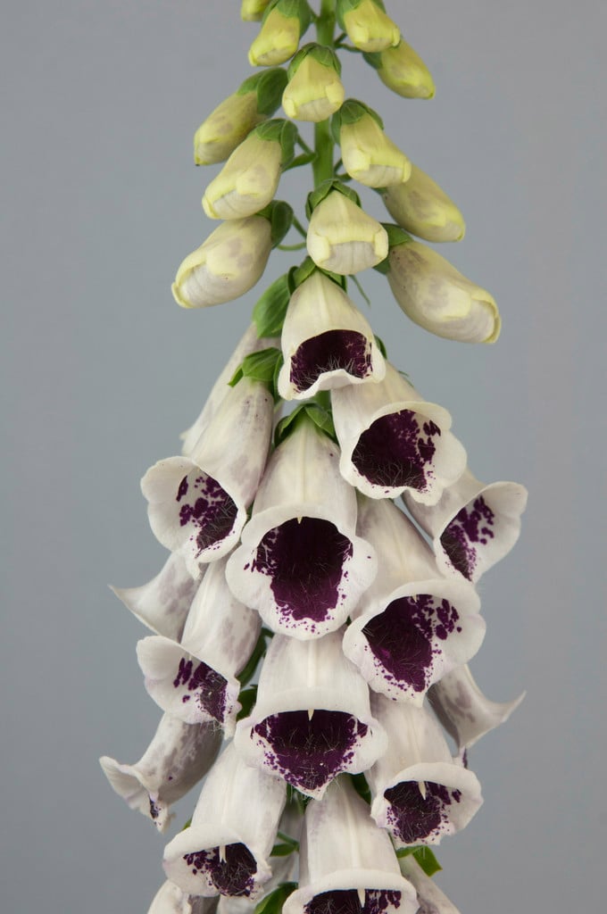 Digitalis can be biennials or usually short-lived perennials forming a rosette of simple leaves with bell-shaped flowers in slender, erect, usually one-sided racemes