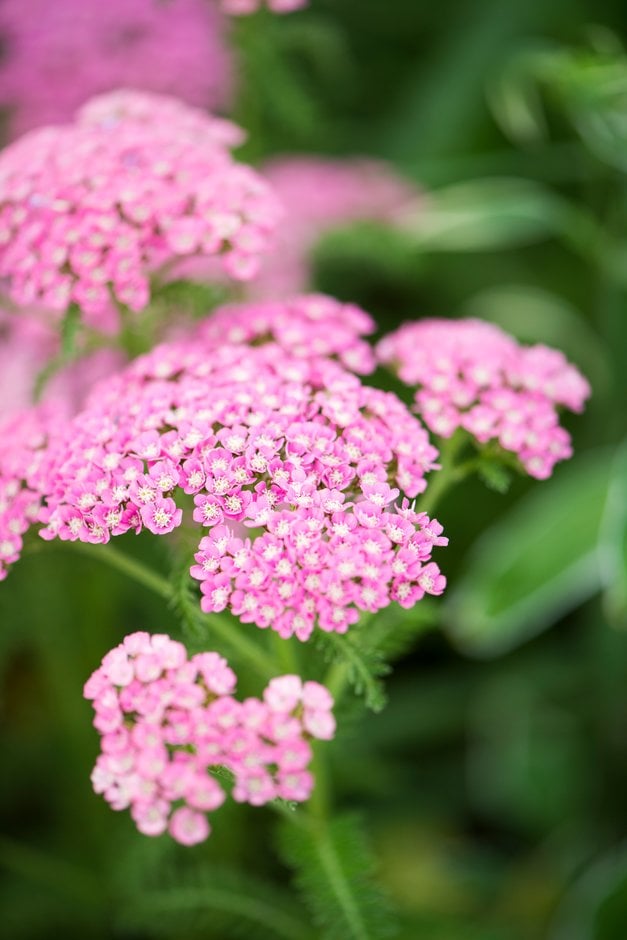 An upright perennial to about 60cm with fern-like, grey-green foliage. Flat clusters of small, non-fading, pink flowers are produced in summer