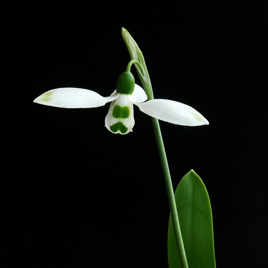 Galanthus are dwarf bulbous perennials with linear or strap-shaped leaves, and solitary, often honey-scented, nodding flowers with 3 white outer tepals and 3 smaller inner ones often marked with green