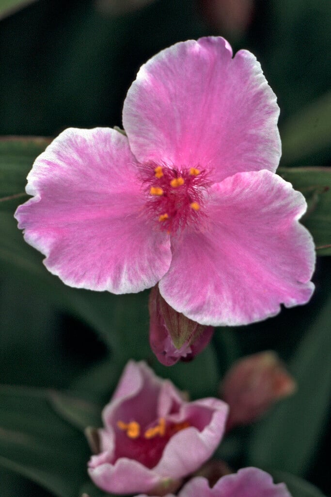 Tradescantia can be trailing or tufted perennials with usually fleshy, evergreen foliage and distinctive, 3-petalled flowers