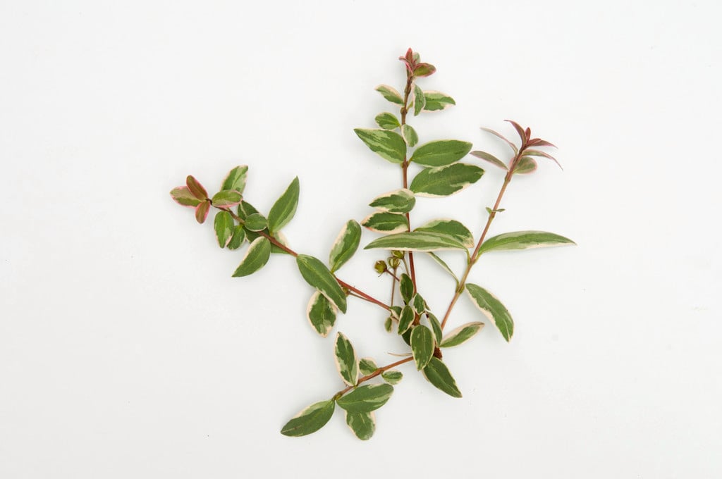 A compact, slow-growing, evergreen shrub, to 1.5m tall and wide, with elliptic to ovate, glossy, variegated leaves, to 3.5cm long, coloured green with cream and pink margins. Nodding white and pink bell-shaped flowers in summer are followed by edible, aromatic berries