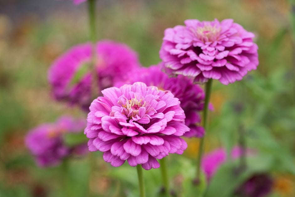Zinnia can be annuals, perennials or sub-shrubs, with branching stems bearing opposite leaves and solitary terminal flower-heads in summer