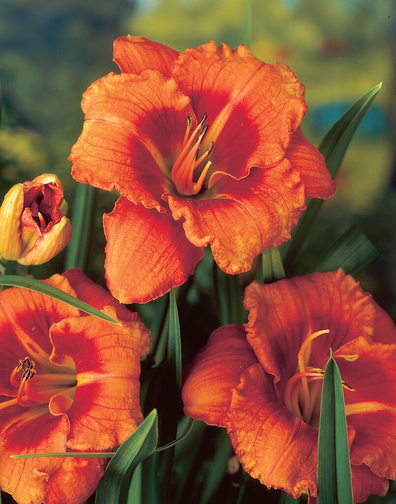 Hemerocallis may be evergreen or herbaceous perennials, with narrow, strap-shaped leaves and funnel-shaped flowers on erect stems in late spring or early summer