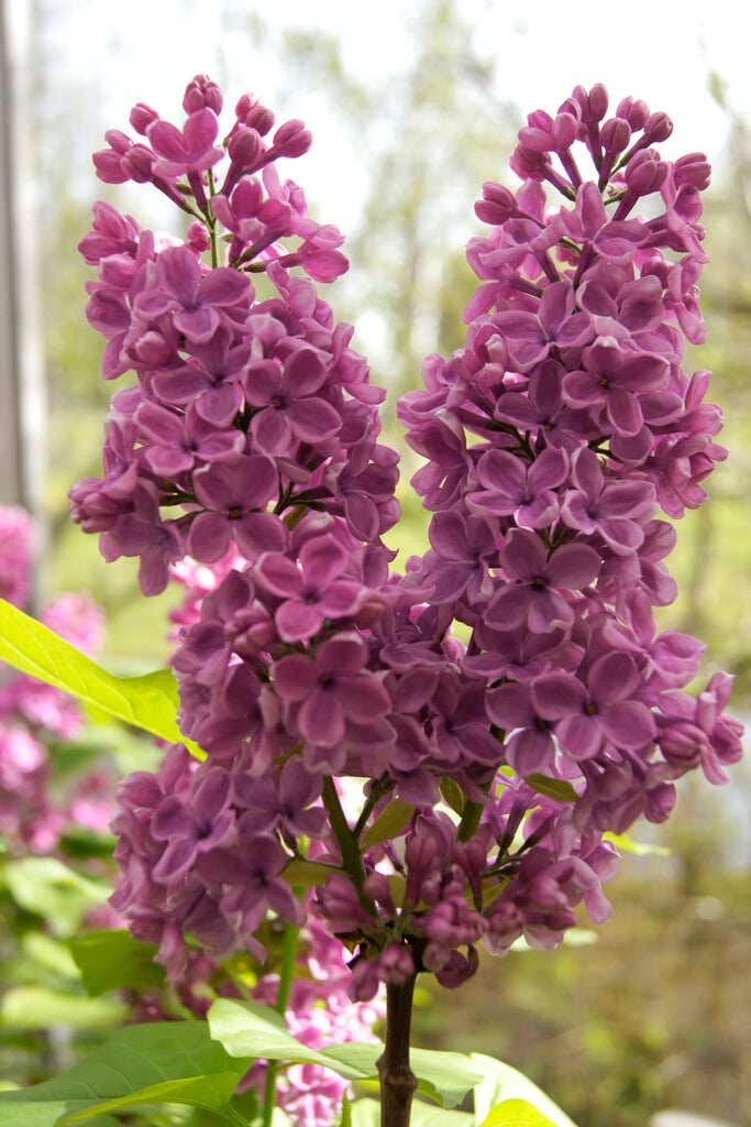Syringa can be deciduous shrubs or trees, with simple, entire or rarely pinnate leaves and conical panicles of small, very fragrant, 4-lobed tubular flowers in late spring or early summer