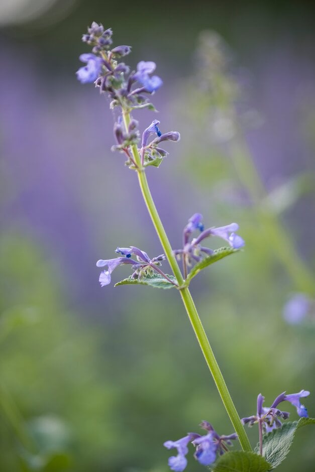 Nepeta can be annuals or, more commonly, perennials, with paired, usually aromatic leaves, and terminal spikes or panicles of 2-lipped, tubular flowers