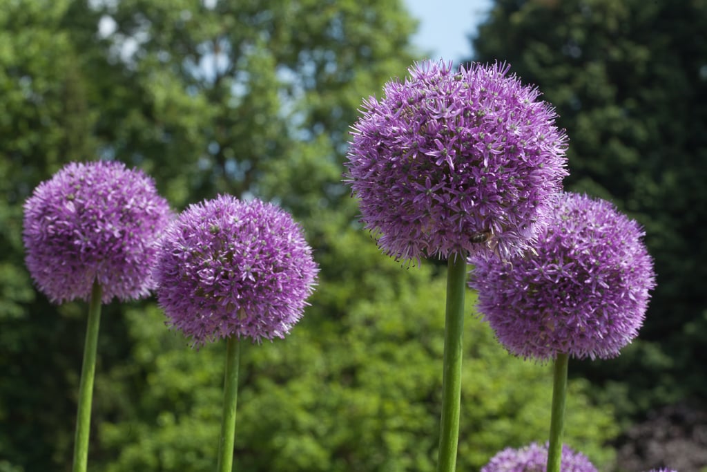 Allium are bulbous herbaceous perennials with a strong onion or garlic scent, linear, strap-shaped or cylindrical basal leaves and star-shaped or bell-shaped flowers in an umbel on a leafless stem