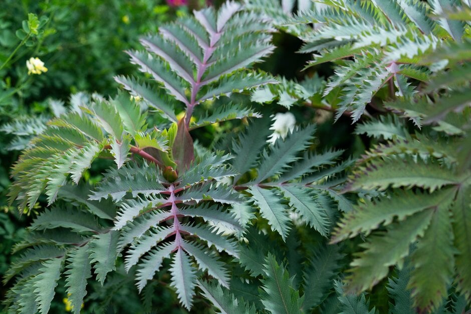 Melianthus are evergreen shrubs, often grown as herbaceous perennials, with handsome pinnate leaves and small, tubular flowers in narrow, erect racemes