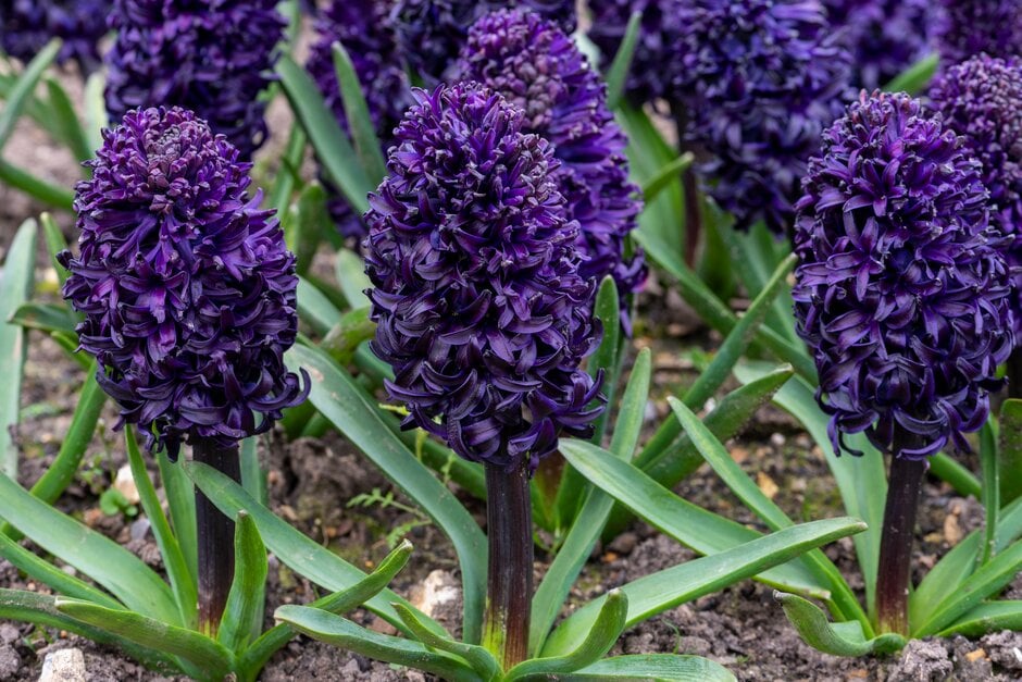 Hyacinthus are bulbous perennial with glossy, broadly strap-shaped leaves and fragrant, bell-shaped flowers with recurved petals, borne in loose or dense racemes in spring