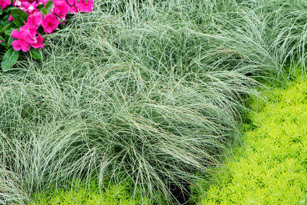 Clump-forming, evergreen perennial sedge, about 35cm tall, with arching, hair-like, silvery sage-green leaves. Carries brown flower spikes on wiry stems, 25cm long in mid and late summer