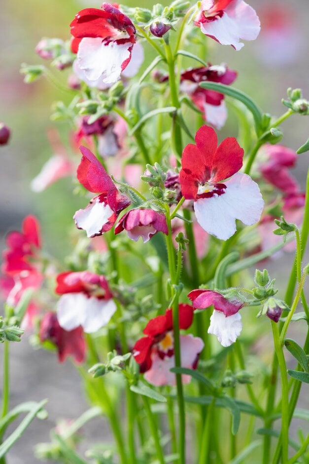 Nemesia can be annuals, perennials or sub-shrubs of bushy habit, with simple, opposite leaves and 2-lipped flowers in short racemes or solitary in the leaf axils