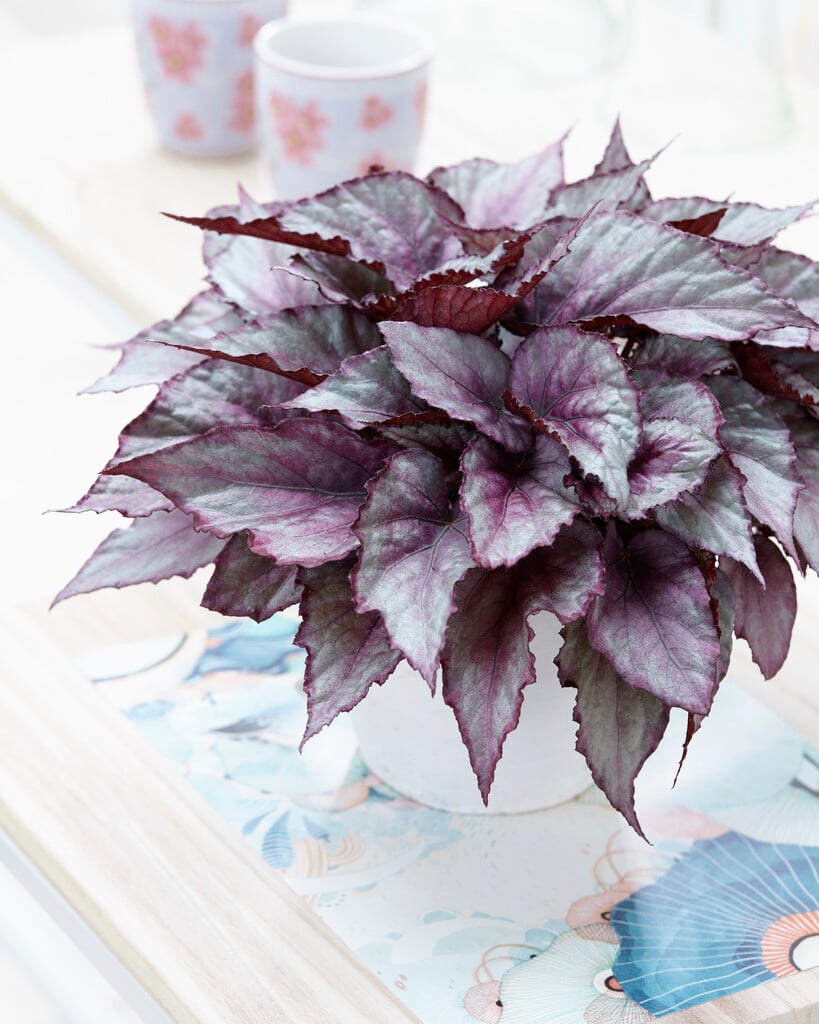 Rex begonias are evergreen, rhizomatous perennials grown for their handsome, brightly coloured leaves, rather than the small pale pink or white flowers which may appear in spring, summer or autumn