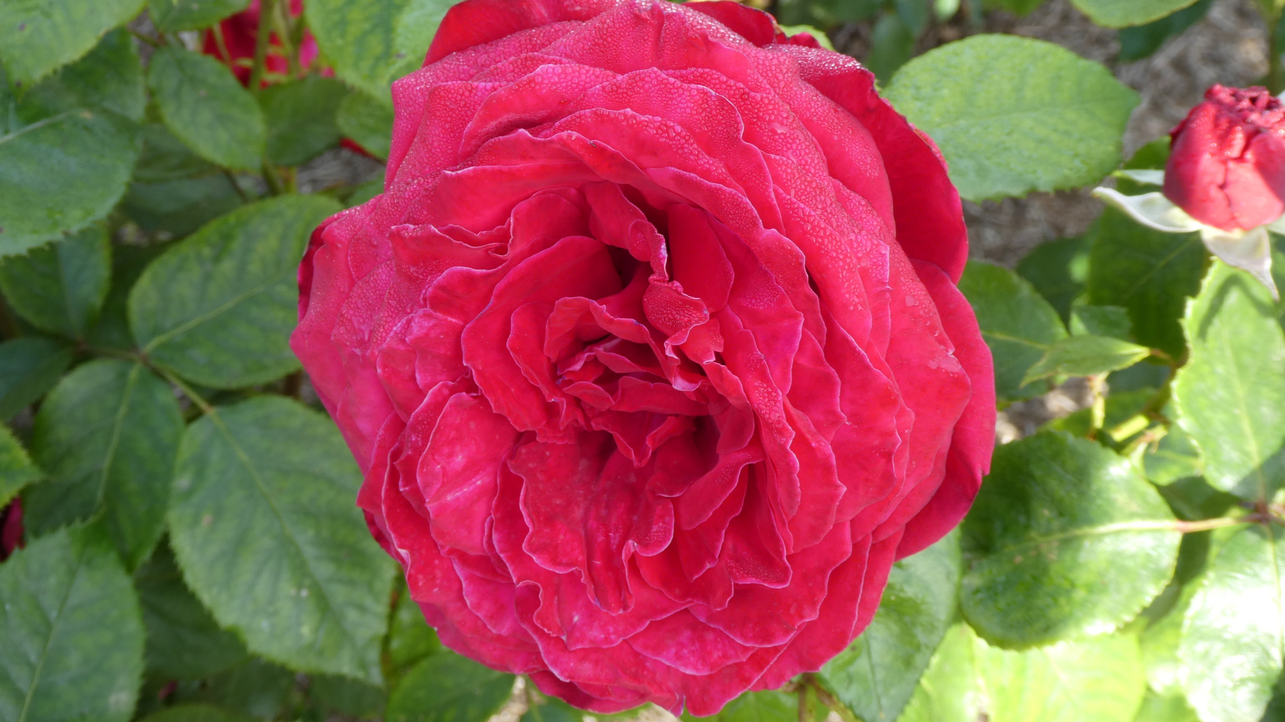 A vigorous, bushy rose to 75cm tall, with dark green foliage and fragrant, shapely, dark-red, high-centred blooms opening from well-formed buds and flowering repeatedly through summer
