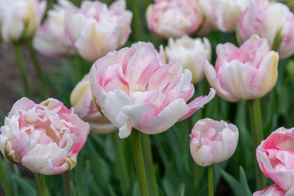 - Double Late Group tulips flower in late spring, with large, fully double flowers, sometimes with a margin of a different colour