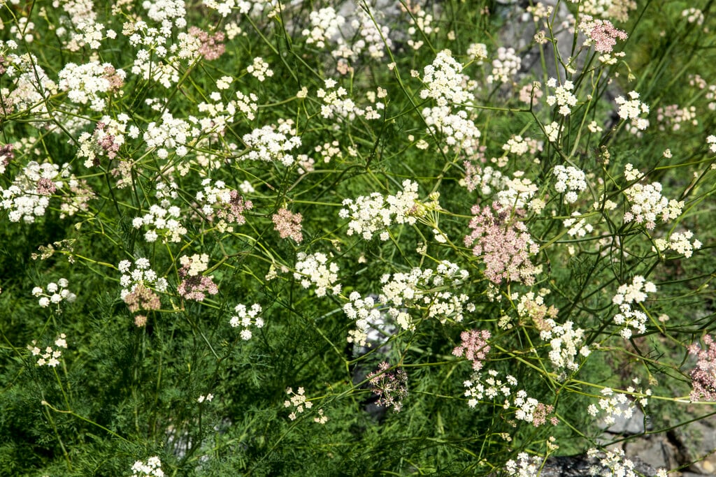 A genus with between 125 and 140 species of herbaceous perennial plants which may be woody at the base and have a cone-shaped tap root. Plants have intricate, stiff grey-green foliage on upright stems, topped with dense white umbels