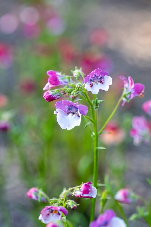 Nemesia can be annuals, perennials or sub-shrubs of bushy habit, with simple, opposite leaves and 2-lipped flowers in short racemes or solitary in the leaf axils