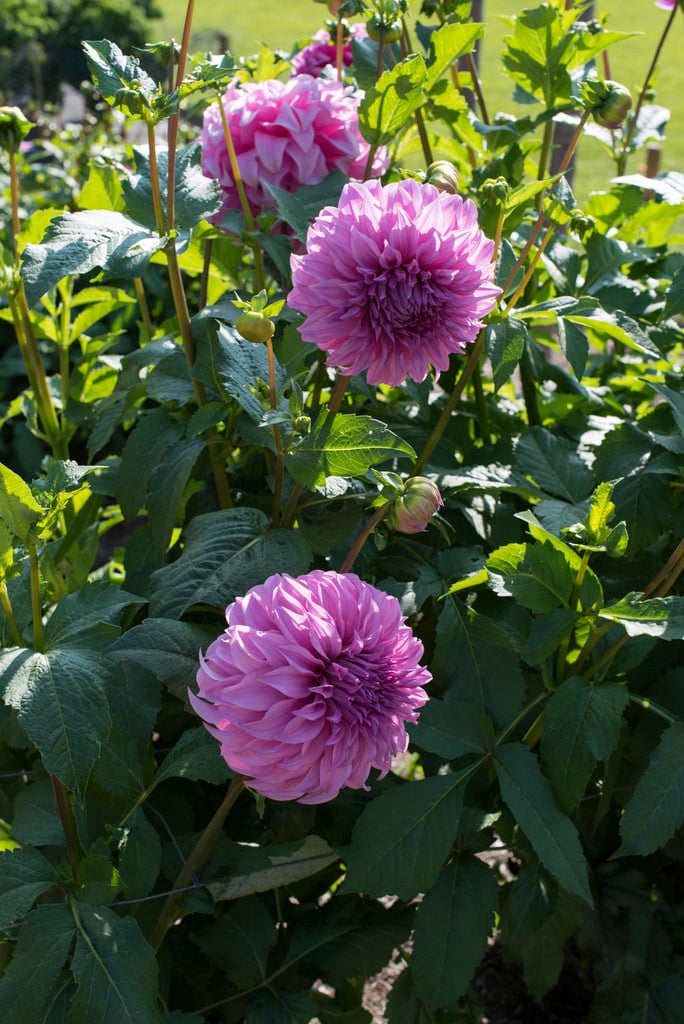 Grow in fertile, humus-rich, well-drained soil enriched with organic matter, in full sun. Pinch out growing tips to encourage bushy plants and stake - see staking perennials. Water if needed in dry periods. Lift and store tubers in autumn to replant, or use as a source of cuttings, in spring. See dahlia cultivation and our video How to plant dahlia tubers and care tips