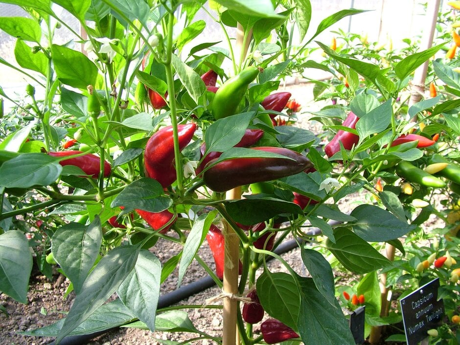 Capsicum are annual or perennial plants, with simple, alternate leaves, and tubular or bell-shaped flowers. They are grown for their glossy, many-seeded edible fruits, including chilli and bell peppers, and as indoor ornamental plants