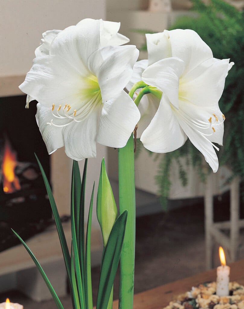Hippeastrum are deciduous bulbous perennials with slightly fleshy, strap-shaped leaves and stout, leafless stems bearing umbels of large, funnel-shaped flowers usually in winter or spring