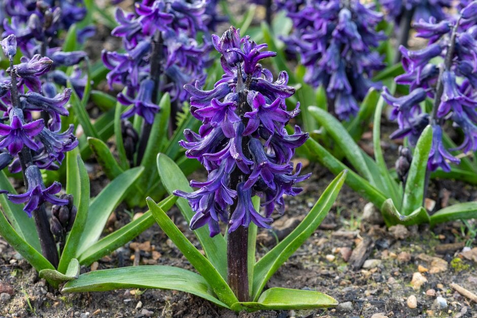Hyacinthus are bulbous perennial with glossy, broadly strap-shaped leaves and fragrant, bell-shaped flowers with recurved petals, borne in loose or dense racemes in spring
