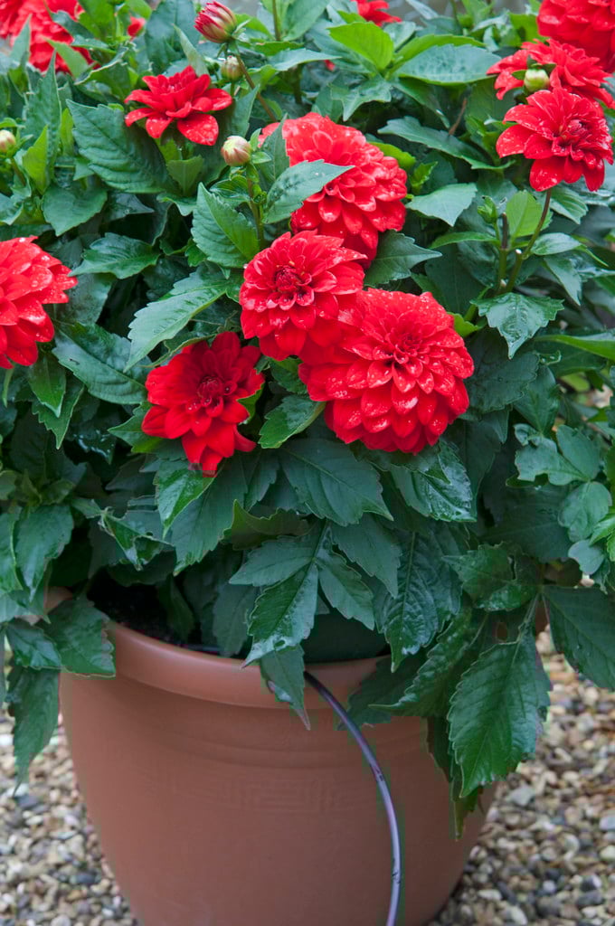 Dahlia are tuberous rooted perennials with pinnately divided leaves and showy flowerheads, double in many cultivars, in summer and autumn