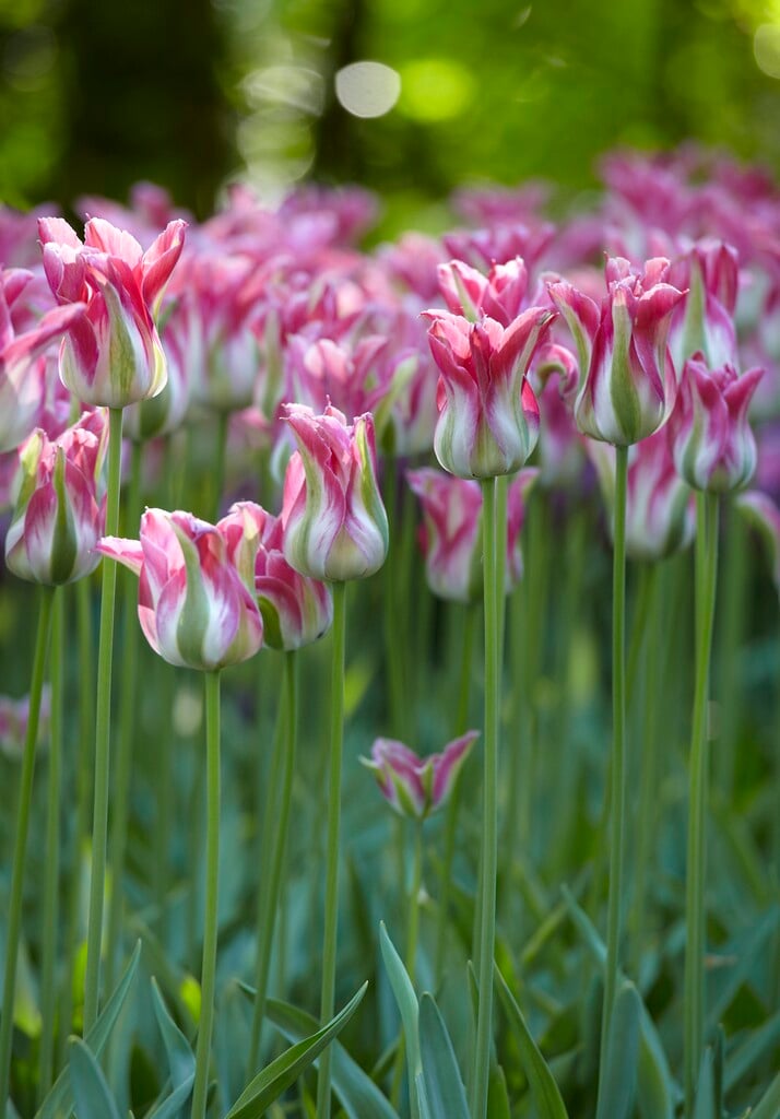 - Viridiflora Group tulips flower in late spring, with cup-shaped flowers flamed or striped with green