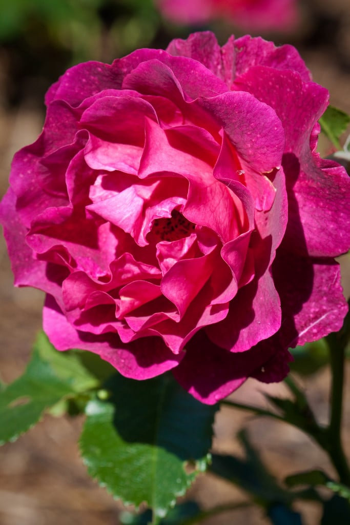 Rosa can be deciduous or semi-evergreen shrubs or scrambling climbers, with usually thorny stems bearing compound pinnate leaves and solitary or clustered flowers. Flowers may be followed by showy red or purple fruits in some varieties.