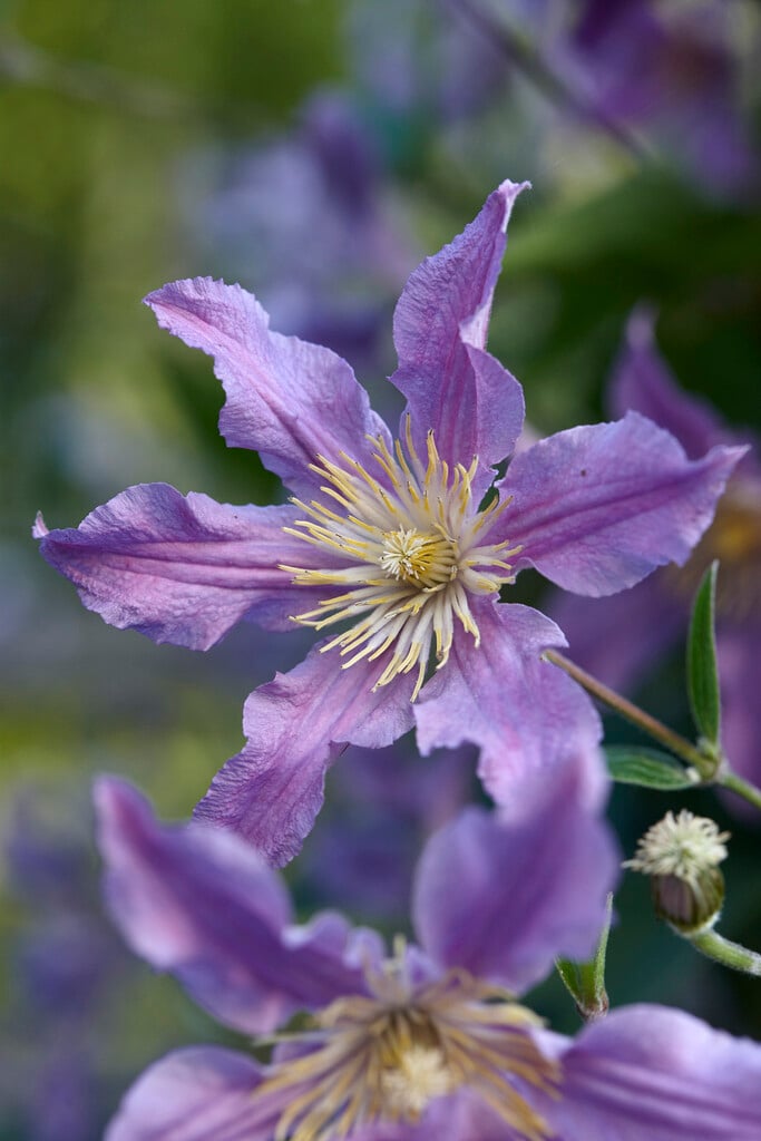 Clematis can be deciduous or evergreen shrubs or herbaceous perennials, mostly climbing by twining leaf-stalks, and often with showy flowers. Some have attractive fluffy seedheads in autumn