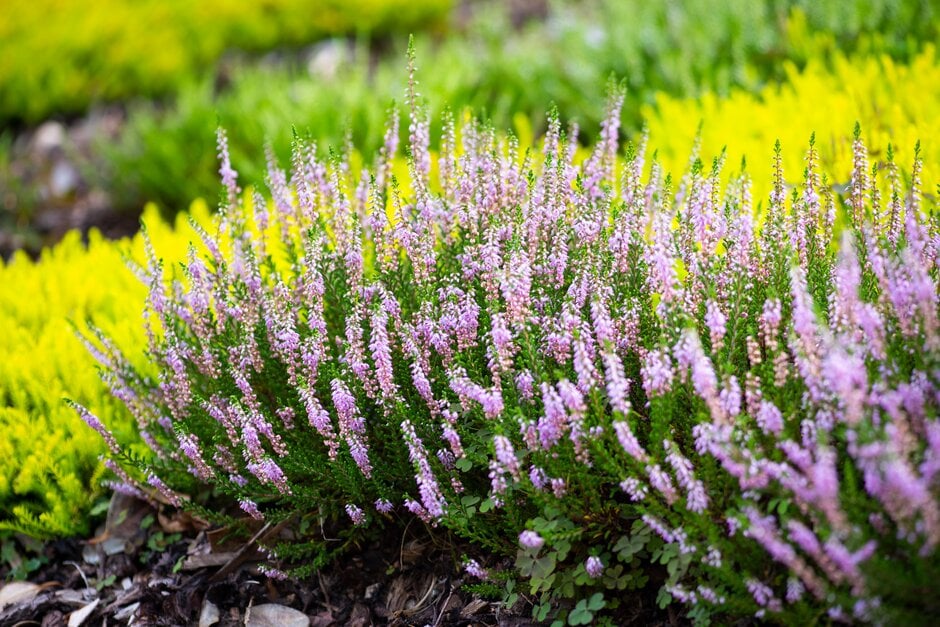 Calluna are low-growing or dwarf evergreen shrubs with stems clothed in tiny overlapping leaves, and terminal, spike-like racemes of small, 4-petalled flowers with coloured calyces