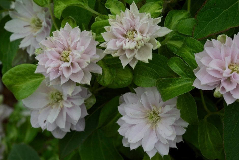 A deciduous climber with mid to dark green leaves, reaching a height of around 2m. Semi-double or double pale lavender pink flowers appear in late spring until early summer and then again in early autumn.