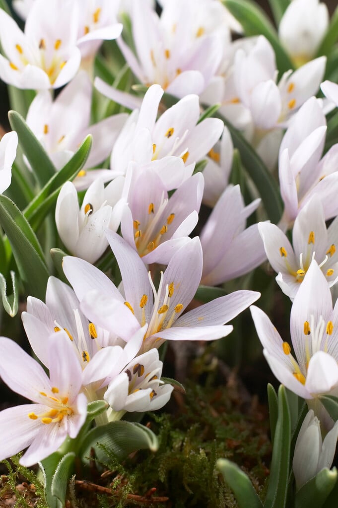Colchicum are cormous perennials with usually coarse, broadly strap-shaped leaves which appear with or after the goblet-shaped flowers