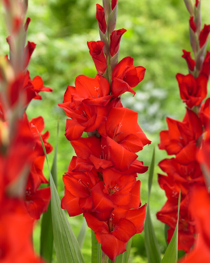 Gladiolus are cormous perennials with fans of sword-shaped or linear leaves and spikes of funnel-shaped flowers