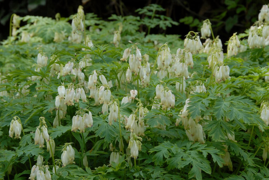 Dicentra can be rhizomatous or tuberous perennials with attractively divided leaves and pendent, heart-shaped flowers, usually in arching panicles or racemes