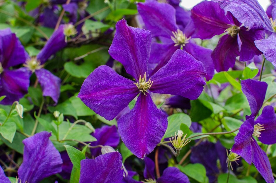 - Late Large-flowered clematis are deciduous climbers with large, star-shaped flowers to 15cm wide, opening on the current year's growth in summer and autumn